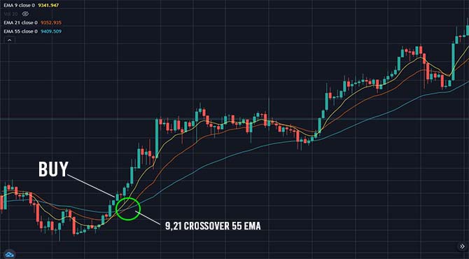 Kapag ang 9 EMA ay nag crossover sa 21 EMA.