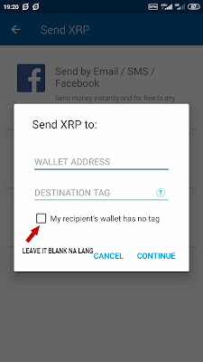 Click mo lang yung send, tapos may makikita ka na options dito na send by email/ sms/facebook (hindi natin papansinin ito), Scan XRP QRcode at Enter XRP wallet address. Alin lang diyan sa dalawa, kung saan ang mas comportable kang gamitin.