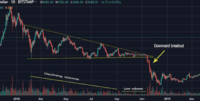 Kung sa bear market mabubuo ang descending triangle, 61% ang chance ng downward break out.