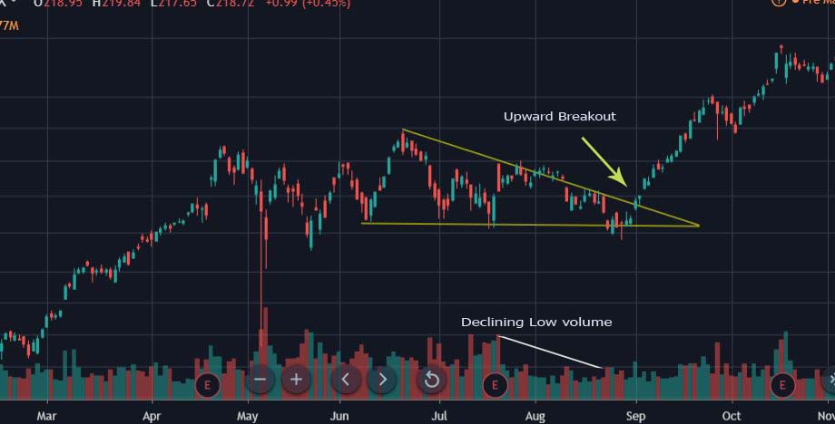 Habang nabubuo ang triangle ang volume naman nito ay nag rerecedes or bumababa. Parang nagiging tahimik at nag iipon ng lakas sa nalalapit na pag sabog pa angat man or pababa.