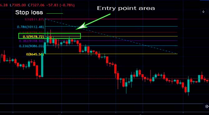 Gamit ang fibonacci retracement, hihintayin natin mag retrace ang price sa level .50 ng Fib.