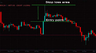 Ang stop loss nakalagay sa ilalim ng wick ng mahabang candlestick.