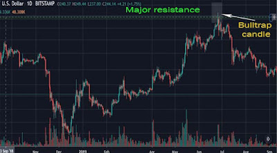 Ang image na nakikita natin sa itaas is a good example of a bull trap. May naghihintay na resitance level above, kaya naman nang tumama ang price dito the first candlestick that break the resistance level, pero sinundan ito ng isang bearish candle stick which is a sign of a reversal.