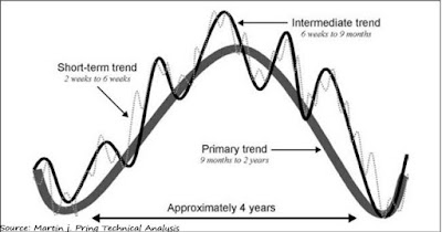 Ang primary trend ay tumatagal ng 9 months to 2 years or higit pa. Ito yung reflection ng mga investors fundamentally sa market. Kung susumahin natin ang kabuan sa pinag samang bull market at bear market tatagal ito ng humigit kumulang apat na taon. Normally, mas matagal ang trend na nangyayari sa bull market kasi mas matagal itong buuin unlike sa bear market na mas mabilis lamang ang pag bagsak(3 years bull market, 1 year bear market).