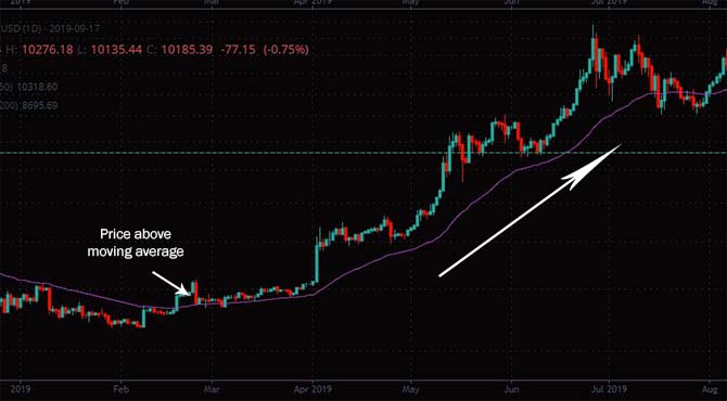 Kapag nag cross ang moving average at price action at napunta ang price sa ibabaw ng moving average, there is a possibility of an uptrend.