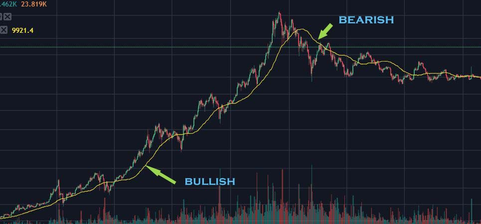 Parehas lang naman ito para malaman kung nasa bullish territory pa rin ang asset, kailangan nasa ibabaw ng 200 MA ang 50 MA. At kapag nasa ilalim ang 50 MA, bear territory.