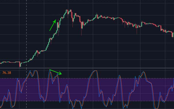 On the other hand ang bearish divergence ay nangayayari kadalasan sa hulihan ng uptrend.