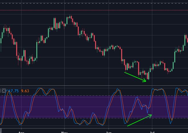 Kung titingnan natin ang image sa itaas ang price trend ay downward samantalang ang Stochastic RSI indicator ay upward direction. Magkasalungat silang dalawa, at makikita ito ng mga traders and they will expect a bullish momentum. Normally ang ginagamit ng iba ay RSI indicator, pero dito sa example ko Stochastic RSI ang ginamit ko. Mas feel ko lang ito gamitin.