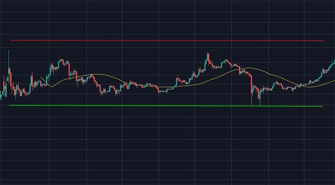 Ang galaw ng price dito ay nasa trading ranges or moving sideways. Hindi ganoon kalalaki ang mga candlestick at halos magkasing dami lang ang bearish and bullish candles.
